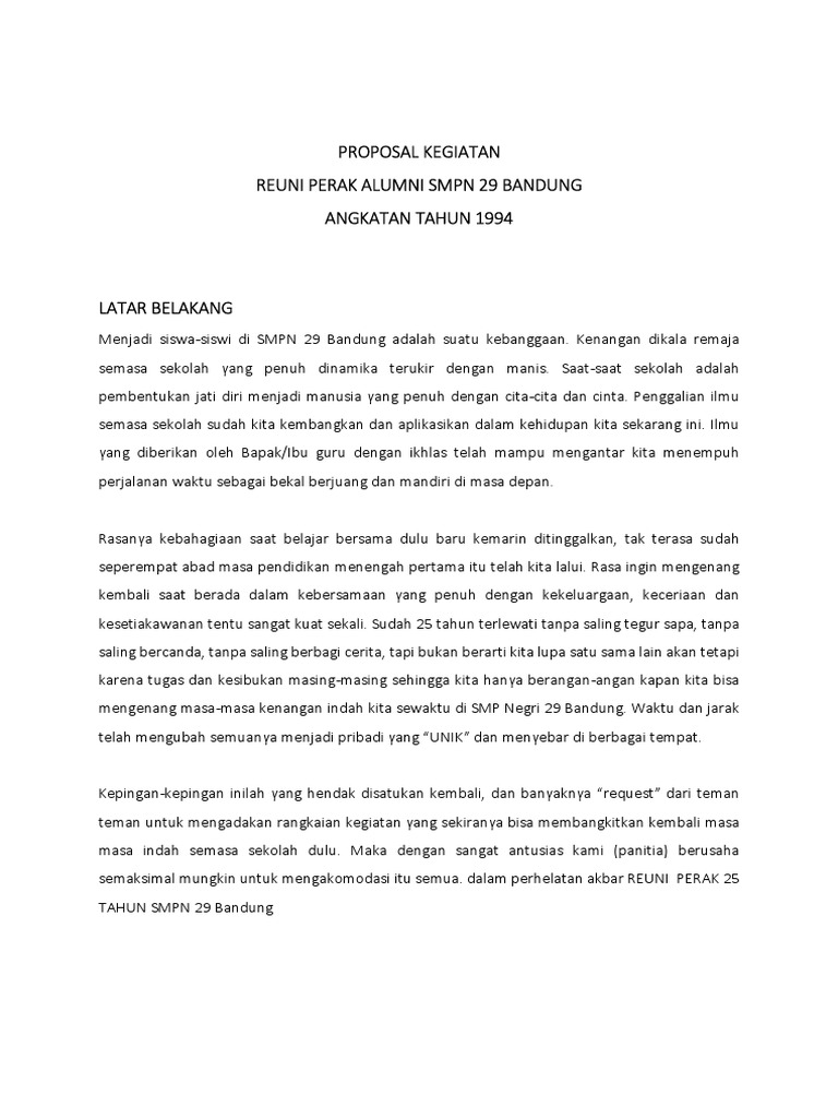 Proposal Reuni Sekolah / Contoh Proposal Reuni Akbar Penggambar - Jun 14, 2021 · diskusi dosen:. 1 buah proposal hal : email protected medan, 13 agustus 2020. Kepada yth, bapak kepala sekolah sma negeri 1 medan di tempat. Jun 14, 2021 · diskusi dosen: Organisasi siswa intra sekolah sma negeri 1 medan jl.